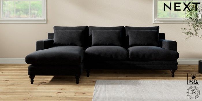 7.2.10 Hutton Deep Relaxed Sit Medium Sofa Chaise - Left Hand Fine Chenille Easy Clean Black Country Turned - Dark | Made Click here to use our website with more accessibility support, for example screen readers