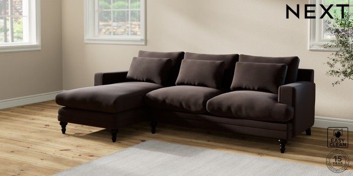 7.2.10 Hutton Deep Relaxed Sit Medium Sofa Chaise - Left Hand Fine Chenille Easy Clean Chocolate Brown Country Turned - Dark | Made Click here to use our website with more accessibility support, for example screen readers