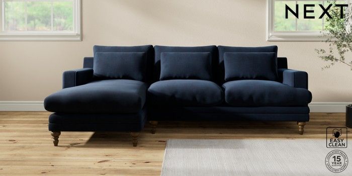 7.2.10 Hutton Deep Relaxed Sit Medium Sofa Chaise - Left Hand Fine Chenille Easy Clean Dark Navy Blue Country Turned - Mid | Made Click here to use our website with more accessibility support, for example screen readers