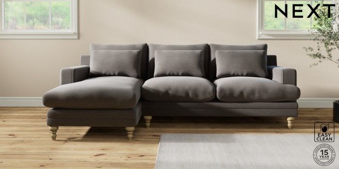 7.2.10 Hutton Deep Relaxed Sit Medium Sofa Chaise - Left Hand Fine Chenille Easy Clean Dark Smoke Grey Country Turned - Light | Made Click here to use our website with more accessibility support, for example screen readers