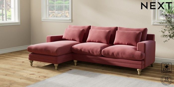 7.2.10 Hutton Deep Relaxed Sit Medium Sofa Chaise - Left Hand Fine Chenille Easy Clean Mid Pink Country Turned - Light | Made Click here to use our website with more accessibility support, for example screen readers