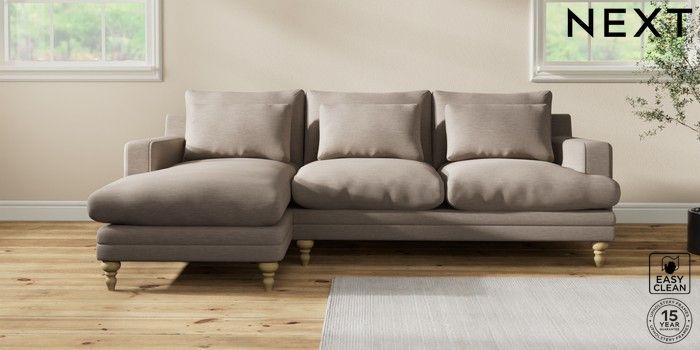 7.2.10 Hutton Deep Relaxed Sit Medium Sofa Chaise - Left Hand Fine Chenille Easy Clean Mid Taupe Brown Country Turned - Light | Made Click here to use our website with more accessibility support, for example screen readers