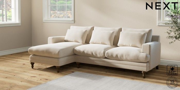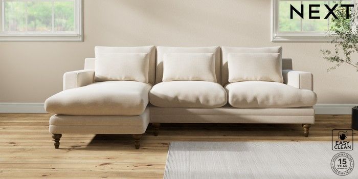7.2.10 Hutton Deep Relaxed Sit Medium Sofa Chaise - Left Hand Fine Chenille Easy Clean Oyster Country Turned - Mid | Made Click here to use our website with more accessibility support, for example screen readers