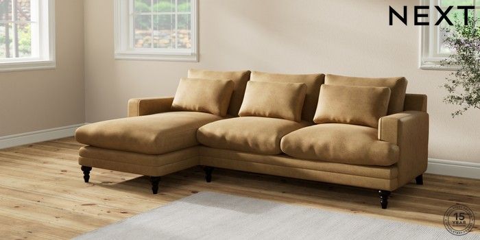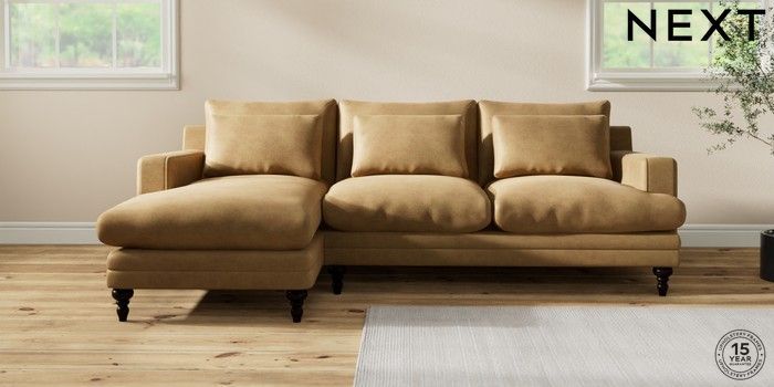 7.2.10 Hutton Deep Relaxed Sit Medium Sofa Chaise - Left Hand Luxe Chenille Honey Yellow Country Turned - Dark | Made Click here to use our website with more accessibility support, for example screen readers