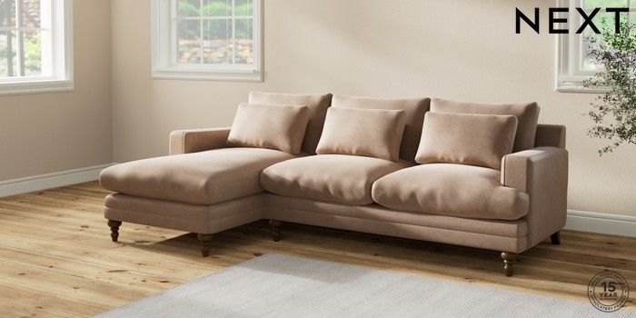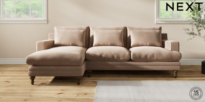 7.2.10 Hutton Deep Relaxed Sit Medium Sofa Chaise - Left Hand Luxe Chenille Mid Natural Country Turned - Mid | Made Click here to use our website with more accessibility support, for example screen readers