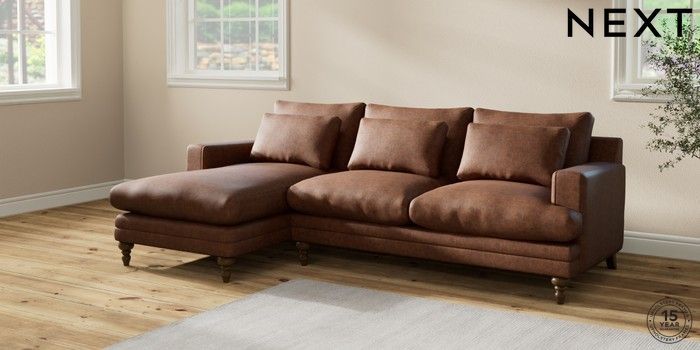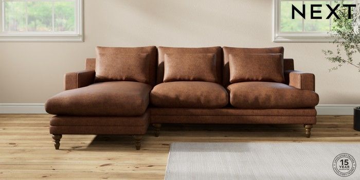 7.2.10 Hutton Deep Relaxed Sit Medium Sofa Chaise - Left Hand Monza Faux Leather Easy Clean Chestnut Brown Country Turned - Mid | Made Click here to use our website with more accessibility support, for example screen readers