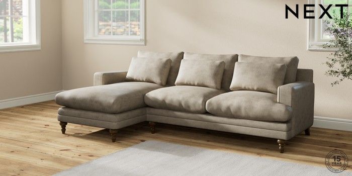 7.2.10 Hutton Deep Relaxed Sit Medium Sofa Chaise - Left Hand Monza Faux Leather Easy Clean Mink Brown Country Turned - Mid | Made Click here to use our website with more accessibility support, for example screen readers
