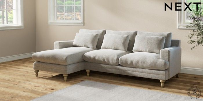 7.2.10 Hutton Deep Relaxed Sit Medium Sofa Chaise - Left Hand Multi Weave Light Blue Country Turned - Light | Made Click here to use our website with more accessibility support, for example screen readers