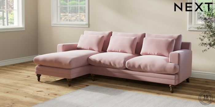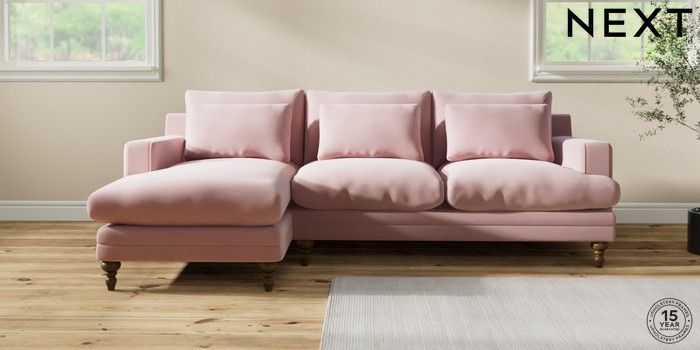 7.2.10 Hutton Deep Relaxed Sit Medium Sofa Chaise - Left Hand Natural Mix Light Rose Pink Country Turned - Mid | Made Click here to use our website with more accessibility support, for example screen readers