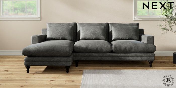 7.2.10 Hutton Deep Relaxed Sit Medium Sofa Chaise - Left Hand Plush Chenille Dark Grey Country Turned - Dark | Made Click here to use our website with more accessibility support, for example screen readers