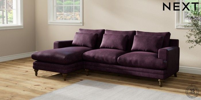 7.2.10 Hutton Deep Relaxed Sit Medium Sofa Chaise - Left Hand Plush Chenille Dark Plum Purple Country Turned - Mid | Made Click here to use our website with more accessibility support, for example screen readers