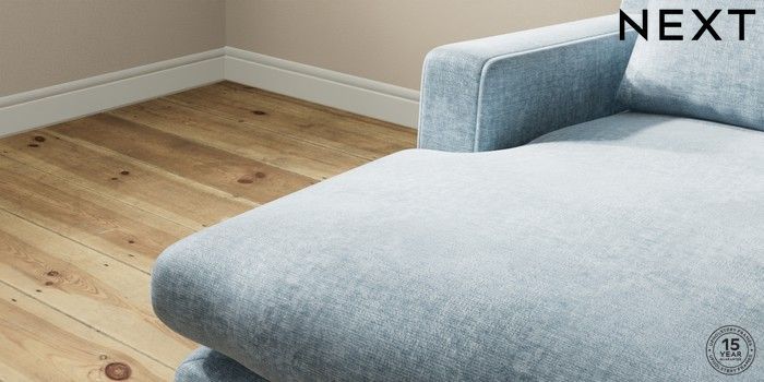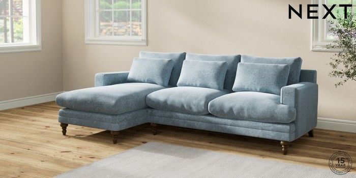 7.2.10 Hutton Deep Relaxed Sit Medium Sofa Chaise - Left Hand Plush Chenille Light Blue Country Turned - Mid | Made Click here to use our website with more accessibility support, for example screen readers