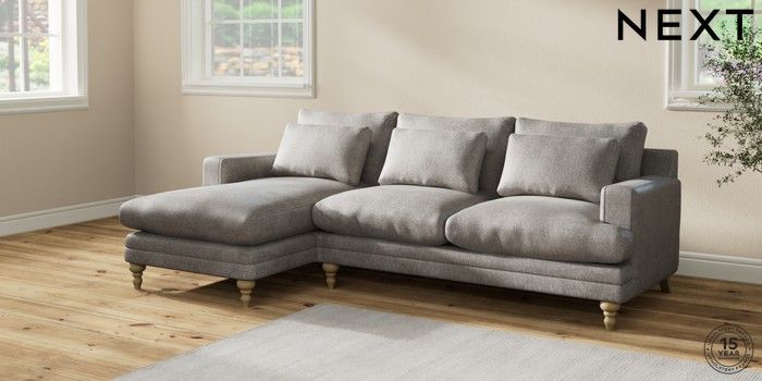 7.2.10 Hutton Deep Relaxed Sit Medium Sofa Chaise - Left Hand Plush Chenille Light Grey Country Turned - Light | Made Click here to use our website with more accessibility support, for example screen readers