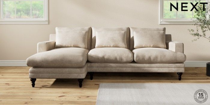 7.2.10 Hutton Deep Relaxed Sit Medium Sofa Chaise - Left Hand Plush Chenille Light Natural Country Turned - Dark | Made Click here to use our website with more accessibility support, for example screen readers