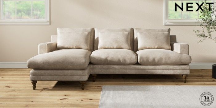 7.2.10 Hutton Deep Relaxed Sit Medium Sofa Chaise - Left Hand Plush Chenille Light Natural Country Turned - Mid | Made Click here to use our website with more accessibility support, for example screen readers