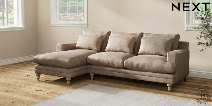 7.2.10 Hutton Deep Relaxed Sit Medium Sofa Chaise - Left Hand Plush Chenille Mid Natural Country Turned - Light | Made Click here to use our website with more accessibility support, for example screen readers