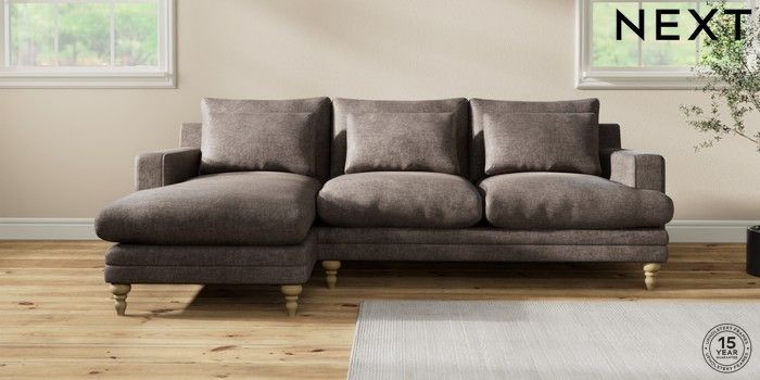 7.2.10 Hutton Deep Relaxed Sit Medium Sofa Chaise - Left Hand Plush Chenille Mink Brown Country Turned - Light | Made Click here to use our website with more accessibility support, for example screen readers