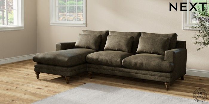 7.2.10 Hutton Deep Relaxed Sit Medium Sofa Chaise - Left Hand Plush Chenille Moss Green Country Turned - Mid | Made Click here to use our website with more accessibility support, for example screen readers