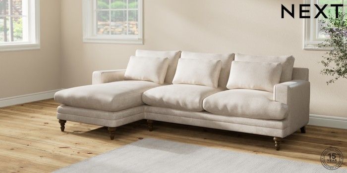 7.2.10 Hutton Deep Relaxed Sit Medium Sofa Chaise - Left Hand Plush Chenille Oyster Country Turned - Mid | Made Click here to use our website with more accessibility support, for example screen readers