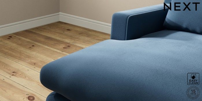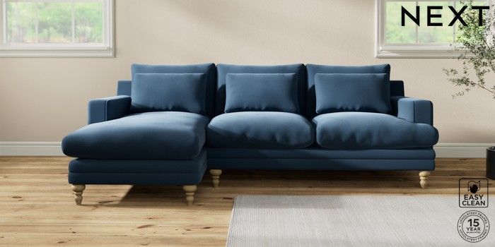 7.2.10 Hutton Deep Relaxed Sit Medium Sofa Chaise - Left Hand Plush Velvet Easy Clean Airforce Blue Country Turned - Light | Made Click here to use our website with more accessibility support, for example screen readers