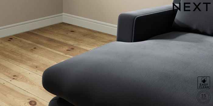 7.2.10 Hutton Deep Relaxed Sit Medium Sofa Chaise - Left Hand Plush Velvet Easy Clean Charcoal Grey Country Turned - Light | Made Click here to use our website with more accessibility support, for example screen readers
