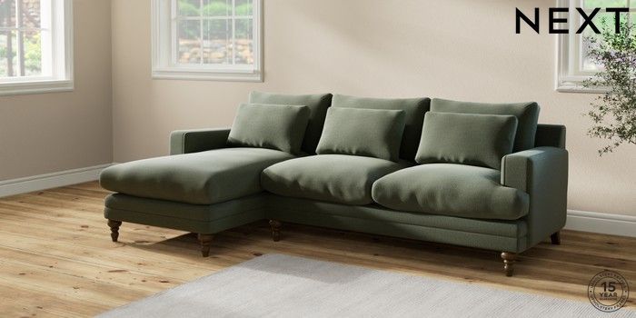 7.2.10 Hutton Deep Relaxed Sit Medium Sofa Chaise - Left Hand Relaxed Linen Look Dark Green Country Turned - Mid | Made Click here to use our website with more accessibility support, for example screen readers