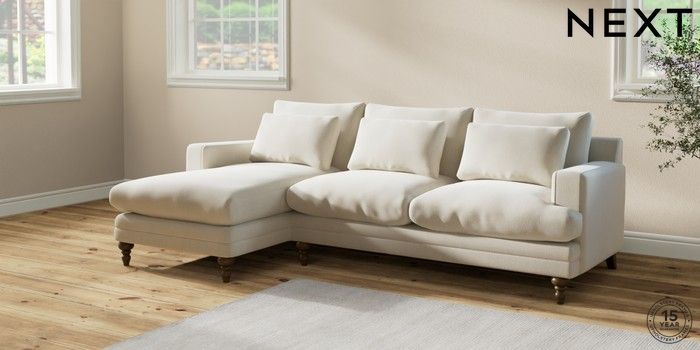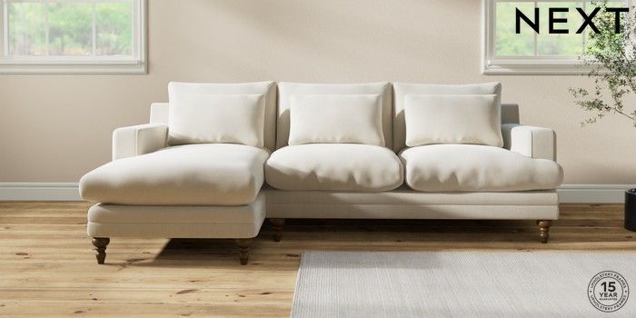 7.2.10 Hutton Deep Relaxed Sit Medium Sofa Chaise - Left Hand Relaxed Linen Look Oyster Country Turned - Mid | Made Click here to use our website with more accessibility support, for example screen readers