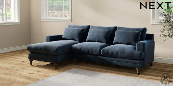 7.2.10 Hutton Deep Relaxed Sit Medium Sofa Chaise - Left Hand Ripple Chenille Dark Blue Country Turned - Mid | Made Click here to use our website with more accessibility support, for example screen readers