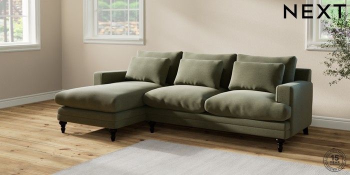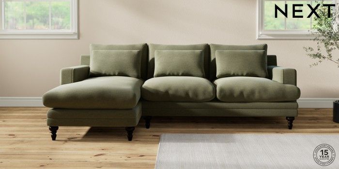 7.2.10 Hutton Deep Relaxed Sit Medium Sofa Chaise - Left Hand Ripple Chenille Mid Moss Green Country Turned - Dark | Made Click here to use our website with more accessibility support, for example screen readers