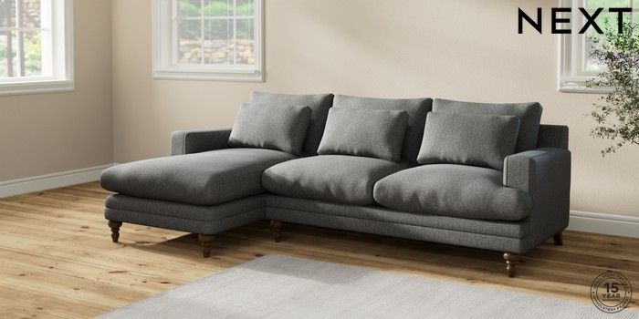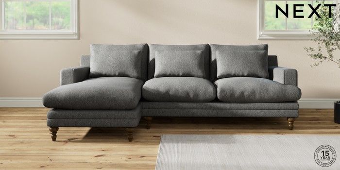 7.2.10 Hutton Deep Relaxed Sit Medium Sofa Chaise - Left Hand Tweedy Chenille Dark Grey Country Turned - Mid | Made Click here to use our website with more accessibility support, for example screen readers