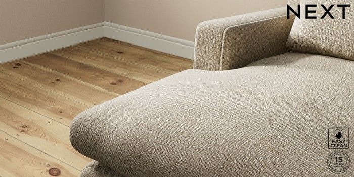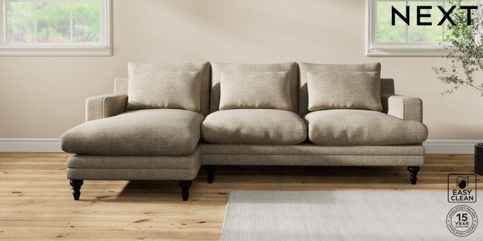 7.2.10 Hutton Deep Relaxed Sit Medium Sofa Chaise - Left Hand Woven Chenille Easy Clean Mid Natural Country Turned - Dark | Made Click here to use our website with more accessibility support, for example screen readers
