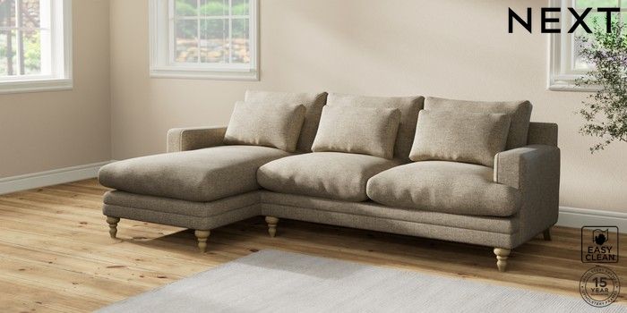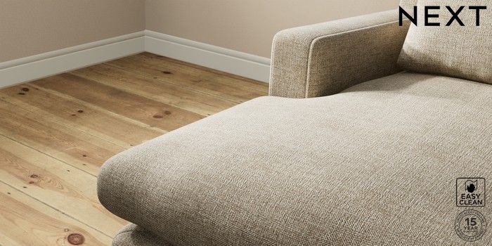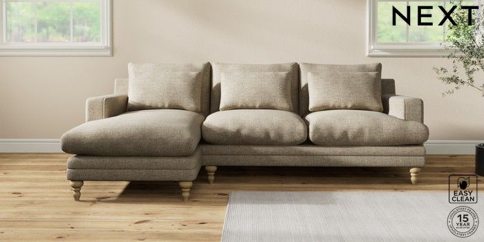 7.2.10 Hutton Deep Relaxed Sit Medium Sofa Chaise - Left Hand Woven Chenille Easy Clean Mid Natural Country Turned - Light | Made Click here to use our website with more accessibility support, for example screen readers