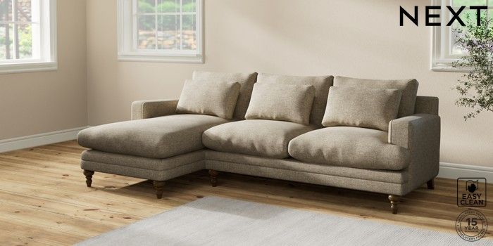 7.2.10 Hutton Deep Relaxed Sit Medium Sofa Chaise - Left Hand Woven Chenille Easy Clean Mid Natural Country Turned - Mid | Made Click here to use our website with more accessibility support, for example screen readers