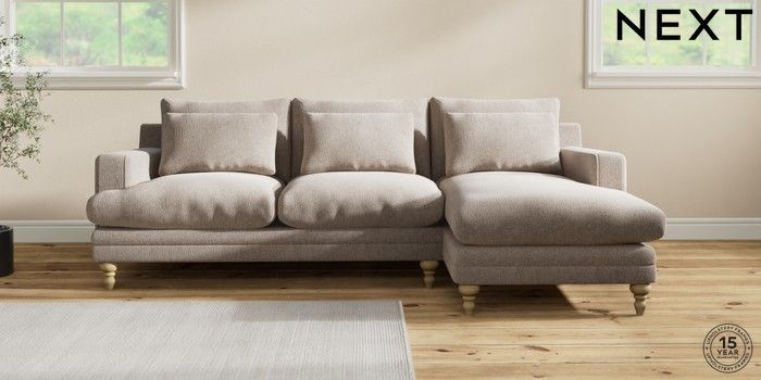 7.2.10 Hutton Deep Relaxed Sit Medium Sofa Chaise - Right Hand Chunky Chenille Light Dove Country Turned - Light | Made Click here to use our website with more accessibility support, for example screen readers