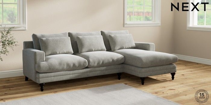 7.2.10 Hutton Deep Relaxed Sit Medium Sofa Chaise - Right Hand Chunky Chenille Light Grey Country Turned - Dark | Made Click here to use our website with more accessibility support, for example screen readers