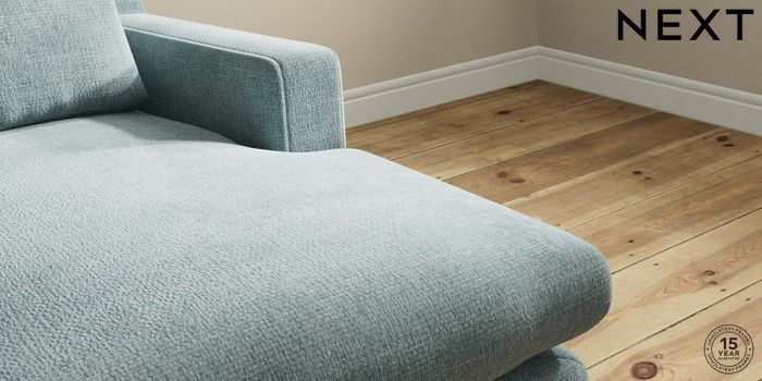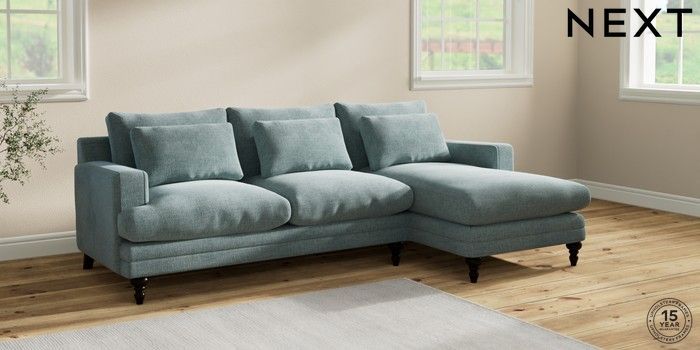 7.2.10 Hutton Deep Relaxed Sit Medium Sofa Chaise - Right Hand Chunky Chenille Light Teal Green Country Turned - Dark | Made Click here to use our website with more accessibility support, for example screen readers