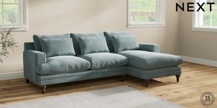 7.2.10 Hutton Deep Relaxed Sit Medium Sofa Chaise - Right Hand Chunky Chenille Light Teal Green Country Turned - Mid | Made Click here to use our website with more accessibility support, for example screen readers