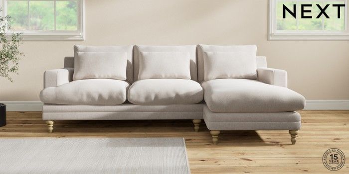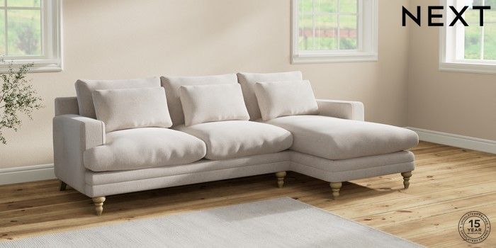 7.2.10 Hutton Deep Relaxed Sit Medium Sofa Chaise - Right Hand Chunky Chenille Oyster Country Turned - Light | Made Click here to use our website with more accessibility support, for example screen readers