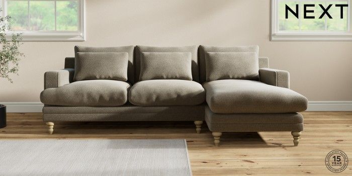 7.2.10 Hutton Deep Relaxed Sit Medium Sofa Chaise - Right Hand Chunky Marl Light Olive Green Country Turned - Light | Made Click here to use our website with more accessibility support, for example screen readers