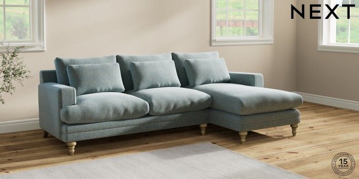 7.2.10 Hutton Deep Relaxed Sit Medium Sofa Chaise - Right Hand Chunky Marl Mid Blue Country Turned - Light | Made Click here to use our website with more accessibility support, for example screen readers