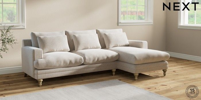 7.2.10 Hutton Deep Relaxed Sit Medium Sofa Chaise - Right Hand Chunky Marl Oyster Country Turned - Light | Made Click here to use our website with more accessibility support, for example screen readers