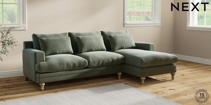 7.2.10 Hutton Deep Relaxed Sit Medium Sofa Chaise - Right Hand Chunky Texture Mid Forest Green Country Turned - Light | Made Click here to use our website with more accessibility support, for example screen readers