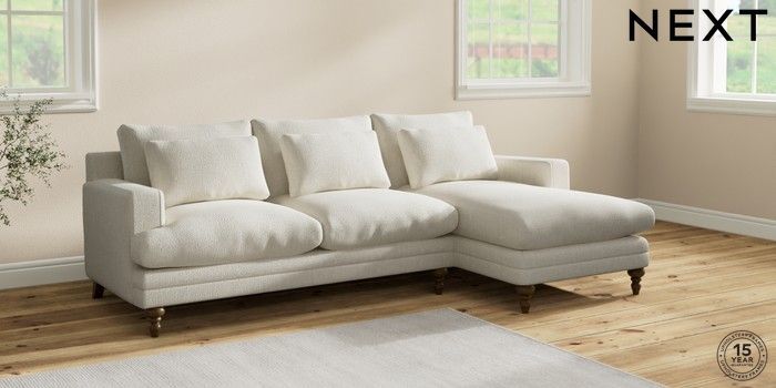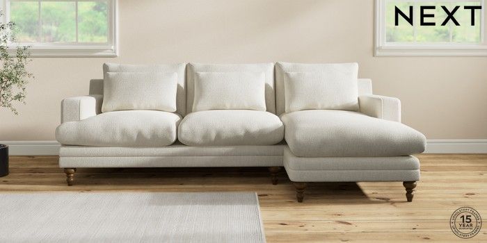 7.2.10 Hutton Deep Relaxed Sit Medium Sofa Chaise - Right Hand Chunky Texture Oyster Country Turned - Mid | Made Click here to use our website with more accessibility support, for example screen readers