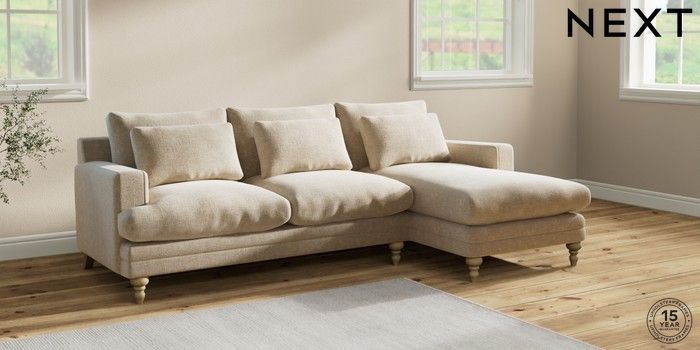 7.2.10 Hutton Deep Relaxed Sit Medium Sofa Chaise - Right Hand Chunky Weave Cream Country Turned - Light | Made Click here to use our website with more accessibility support, for example screen readers