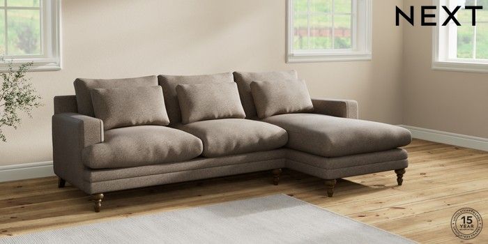 7.2.10 Hutton Deep Relaxed Sit Medium Sofa Chaise - Right Hand Chunky Weave Dark Natural Country Turned - Mid | Made Click here to use our website with more accessibility support, for example screen readers
