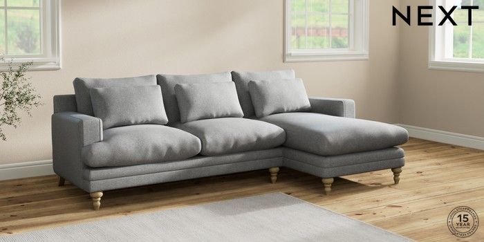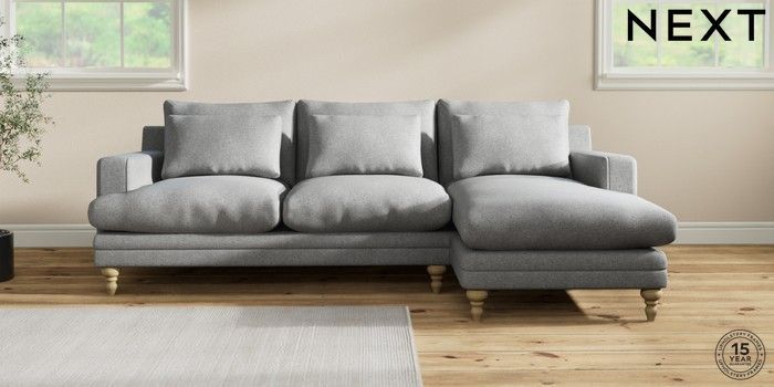 7.2.10 Hutton Deep Relaxed Sit Medium Sofa Chaise - Right Hand Chunky Weave Mid Grey Country Turned - Light | Made Click here to use our website with more accessibility support, for example screen readers