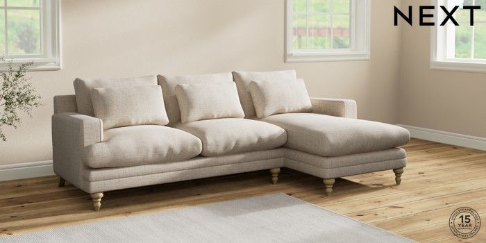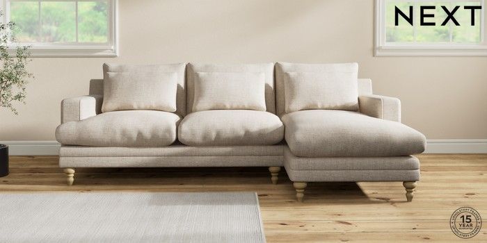7.2.10 Hutton Deep Relaxed Sit Medium Sofa Chaise - Right Hand Chunky Weave Mid Natural Country Turned - Light | Made Click here to use our website with more accessibility support, for example screen readers