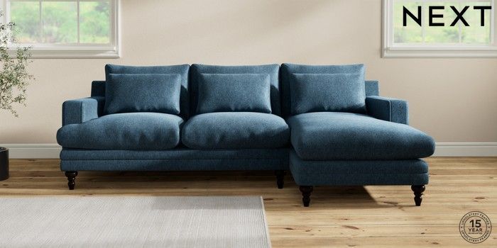 7.2.10 Hutton Deep Relaxed Sit Medium Sofa Chaise - Right Hand Cotswold Chenille Dark Blue Country Turned - Dark | Made Click here to use our website with more accessibility support, for example screen readers