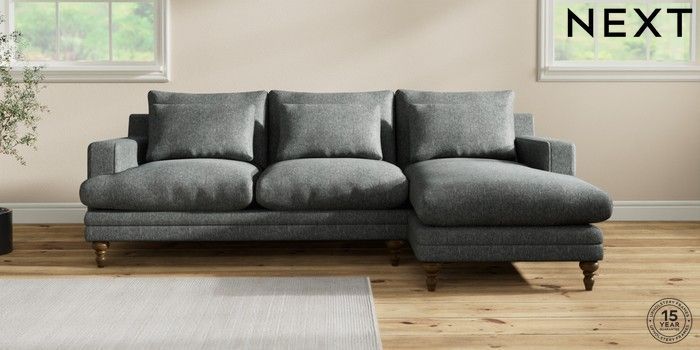 7.2.10 Hutton Deep Relaxed Sit Medium Sofa Chaise - Right Hand Cotswold Chenille Dark Grey Country Turned - Mid | Made Click here to use our website with more accessibility support, for example screen readers