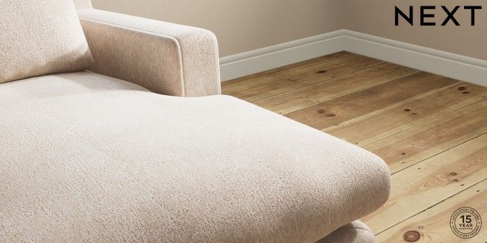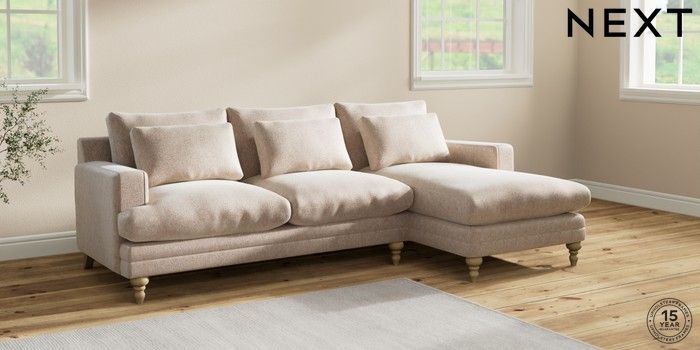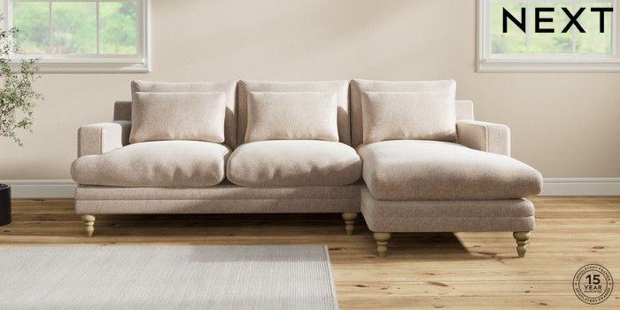 7.2.10 Hutton Deep Relaxed Sit Medium Sofa Chaise - Right Hand Cotswold Chenille Light Natural Country Turned - Light | Made Click here to use our website with more accessibility support, for example screen readers